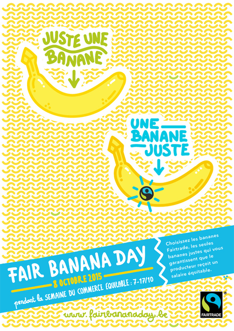 "Choisissez les bananes Fairtrade, les seules bananes justes qui vous garantissent que le producteur reçoit un salaire équitable.